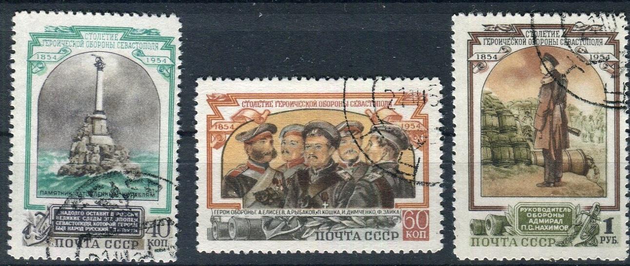 Почтовые марки. СССР, 1954 г. №1790-1792. К 100-летию обороны Севастополя (Кат. Сол.: 200р.).