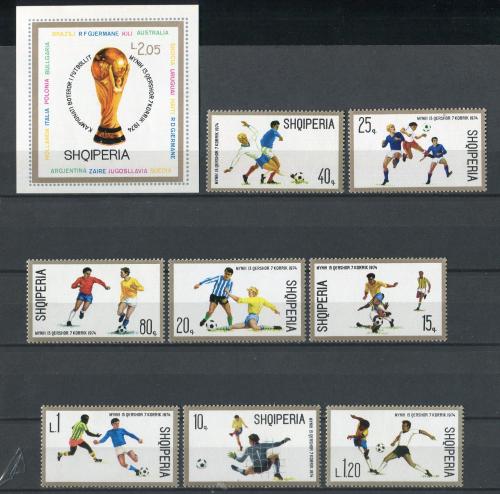 Почтовые марки. Албания, 1974. №1688-1695. Бл.51. Футбол.