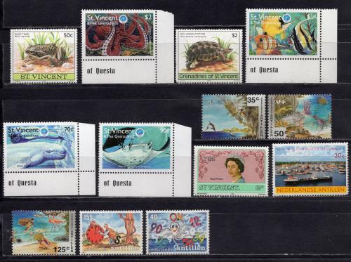 Почтовые марки. Антиллы, С. Винсент 1965-1998г. Рыбы. Морские животные. Сборный лот.
