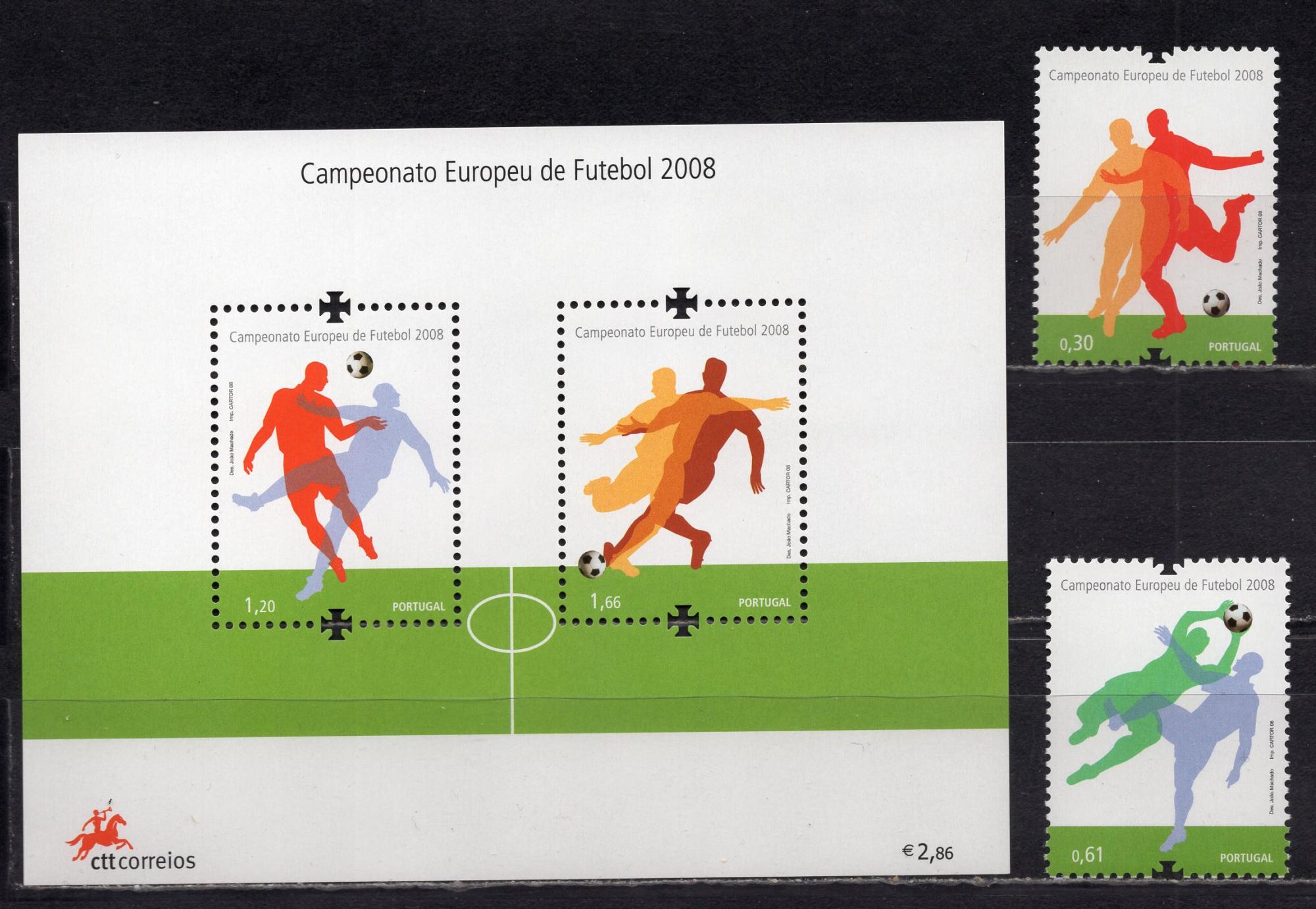 Почтовые марки. Португалия, 2008 г. Футбол. №3294-3295. Бл. 268.