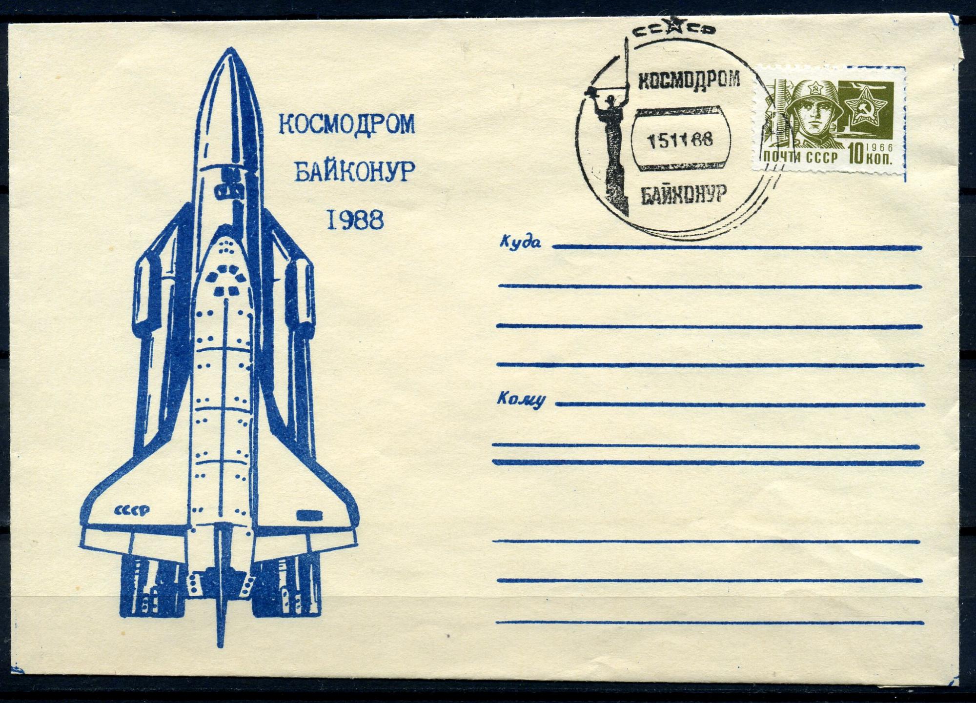Конверт с маркой и СГ. СССР 1968 г. Космодром Байконур. КО.