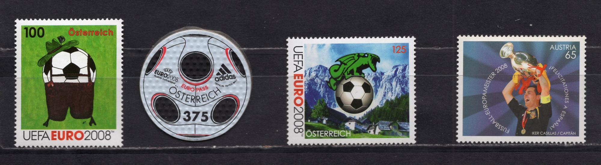 Почтовые марки. Австрия, 2008г. Футбол. Сборный лот. №2727, 2722, 2724, 2778.