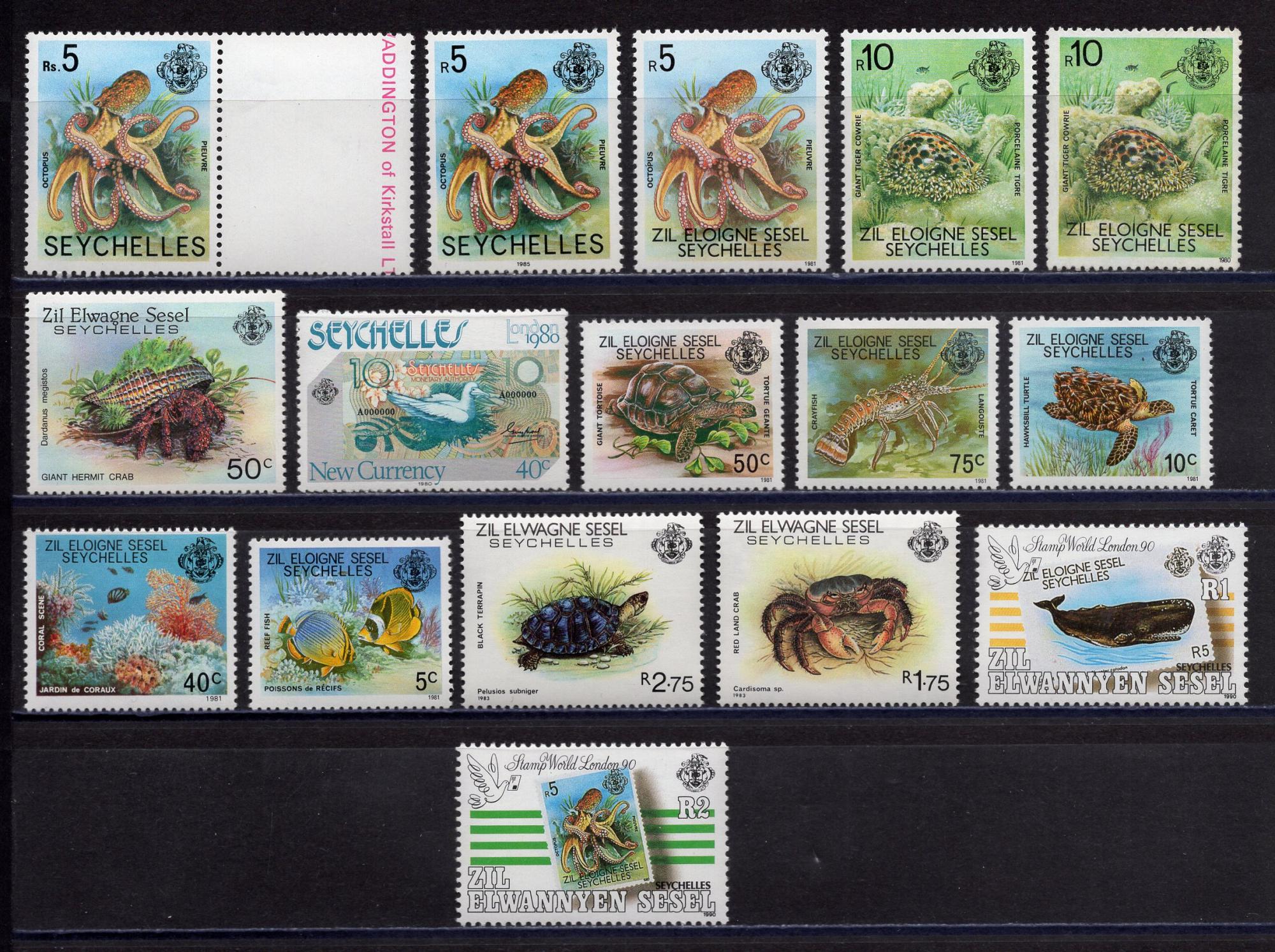Почтовые марки. Сейшелы. 1980-1990г. Рыбы. Морская Флора и Фауна. Сборный Лот.