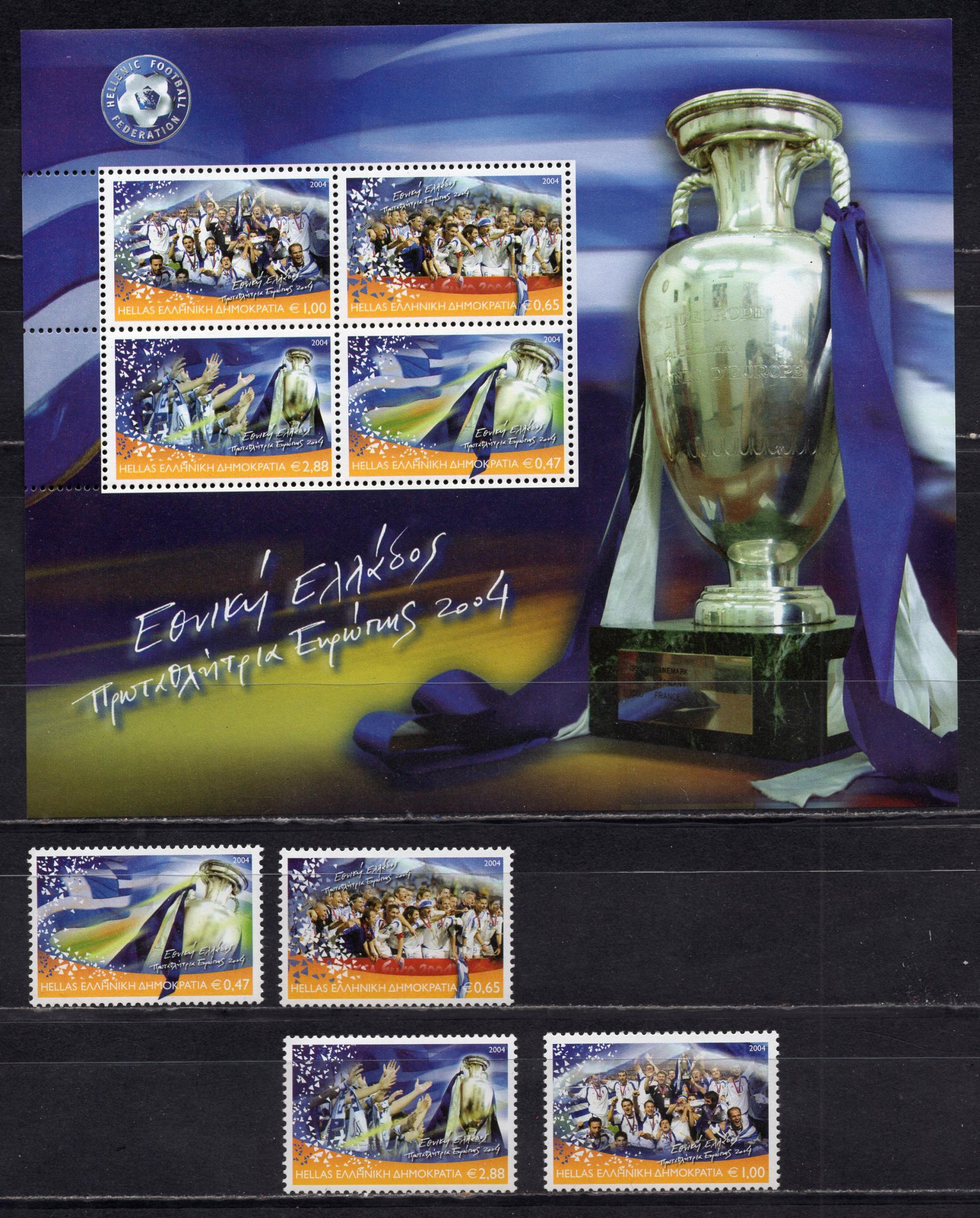 Почтовые марки. Греция, 2004г. Футбол. №2230-2233, Бл.33 (24,0 е)