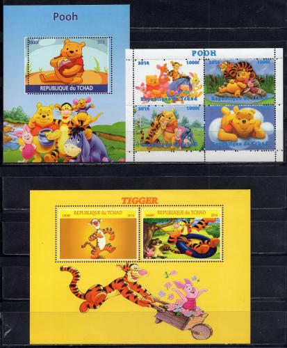 Почтовые марки. Чад, 2017 г. Мультфильмы. Винни-Пух и герои. Некатал.