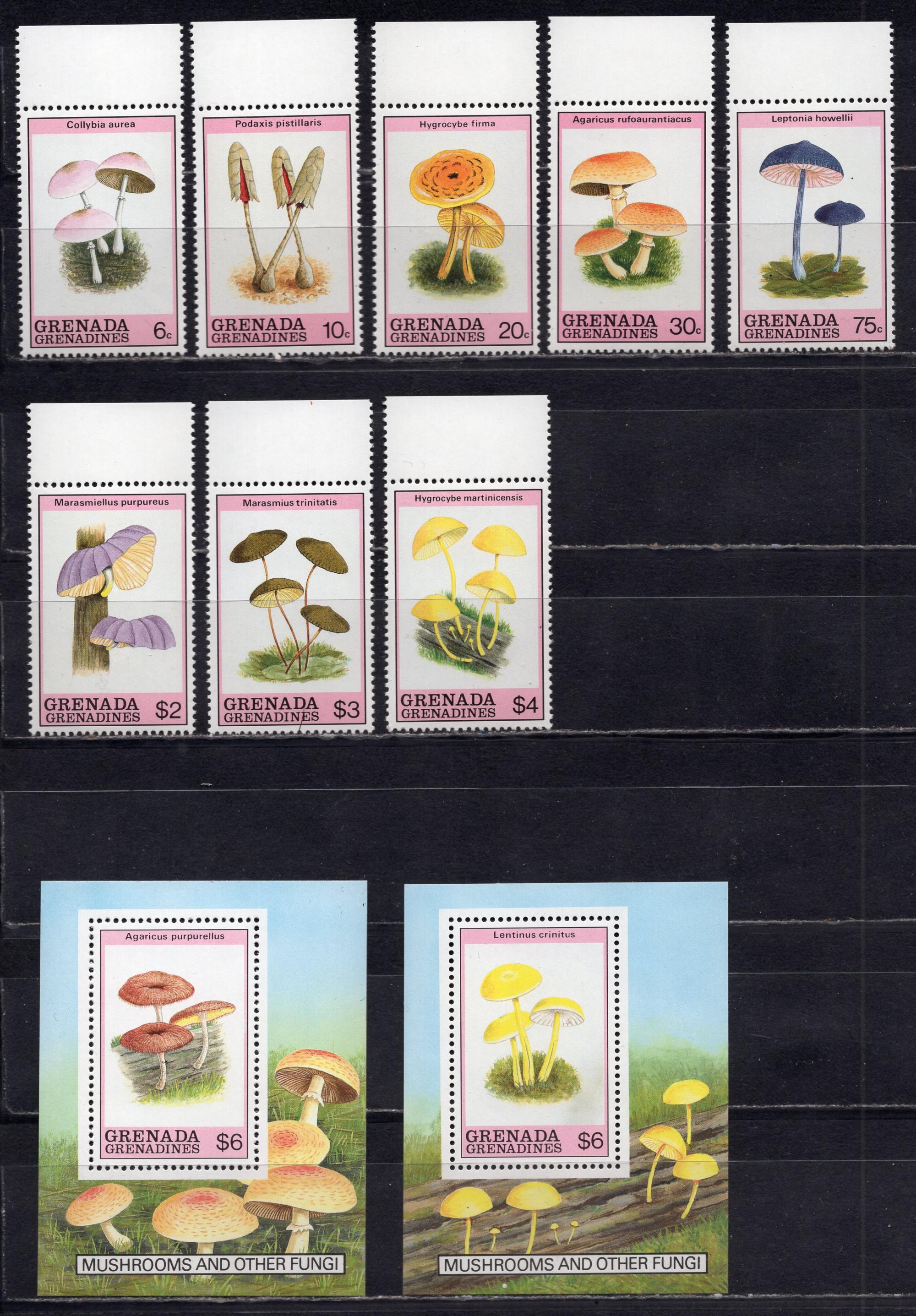 Почтовые марки. Гренада и Гренадины, 1989 г. Грибы. №1191-1198, Бл. 174-175. (Mi 37.0 e)