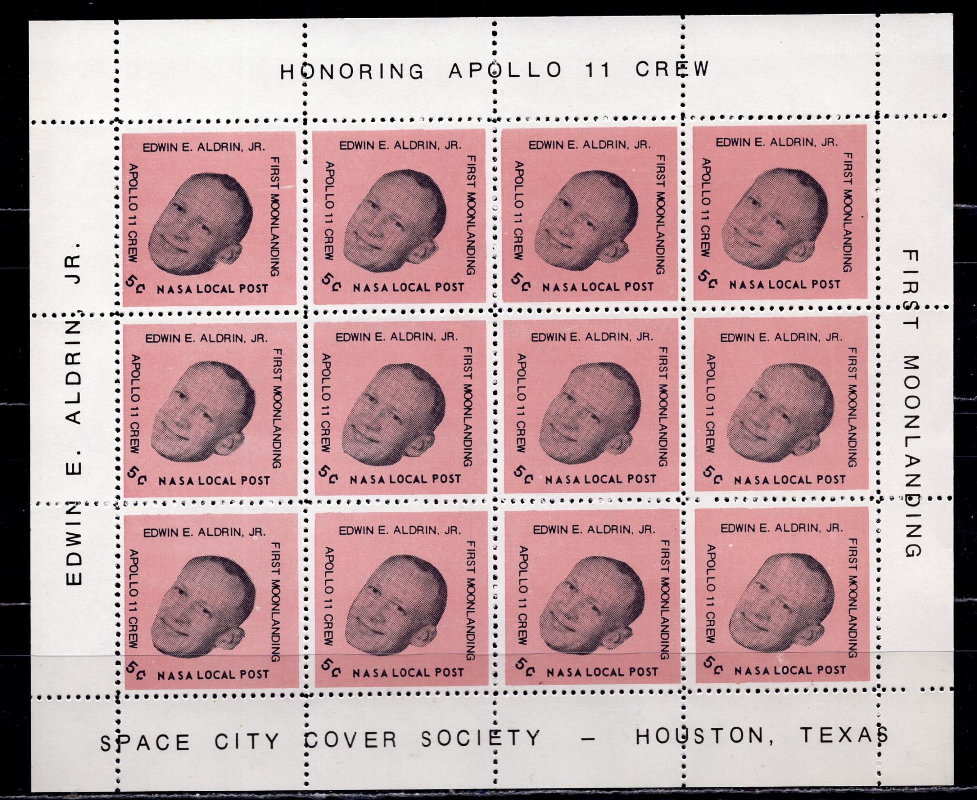 Почтовые марки. США. 1972 г. Космос. Локальная почта НАСА. Апполон-11. Лист.