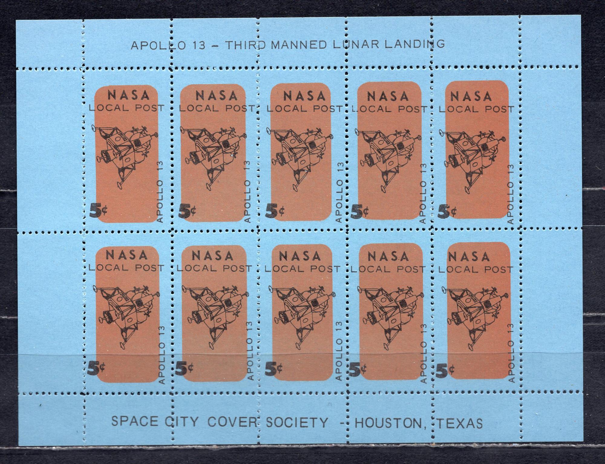 Почтовые марки. США. 1972 г. Космос. Локальная почта НАСА. Апполон-13. Лист.