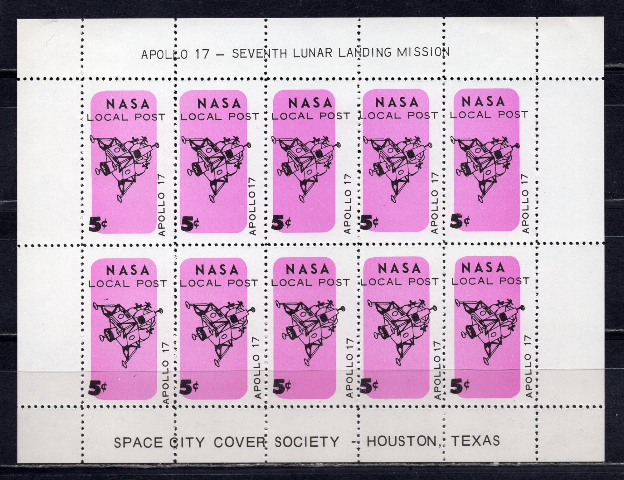 Почтовые марки. США. 1972 г. Космос. Локальная почта НАСА. Апполон-17. Лист.