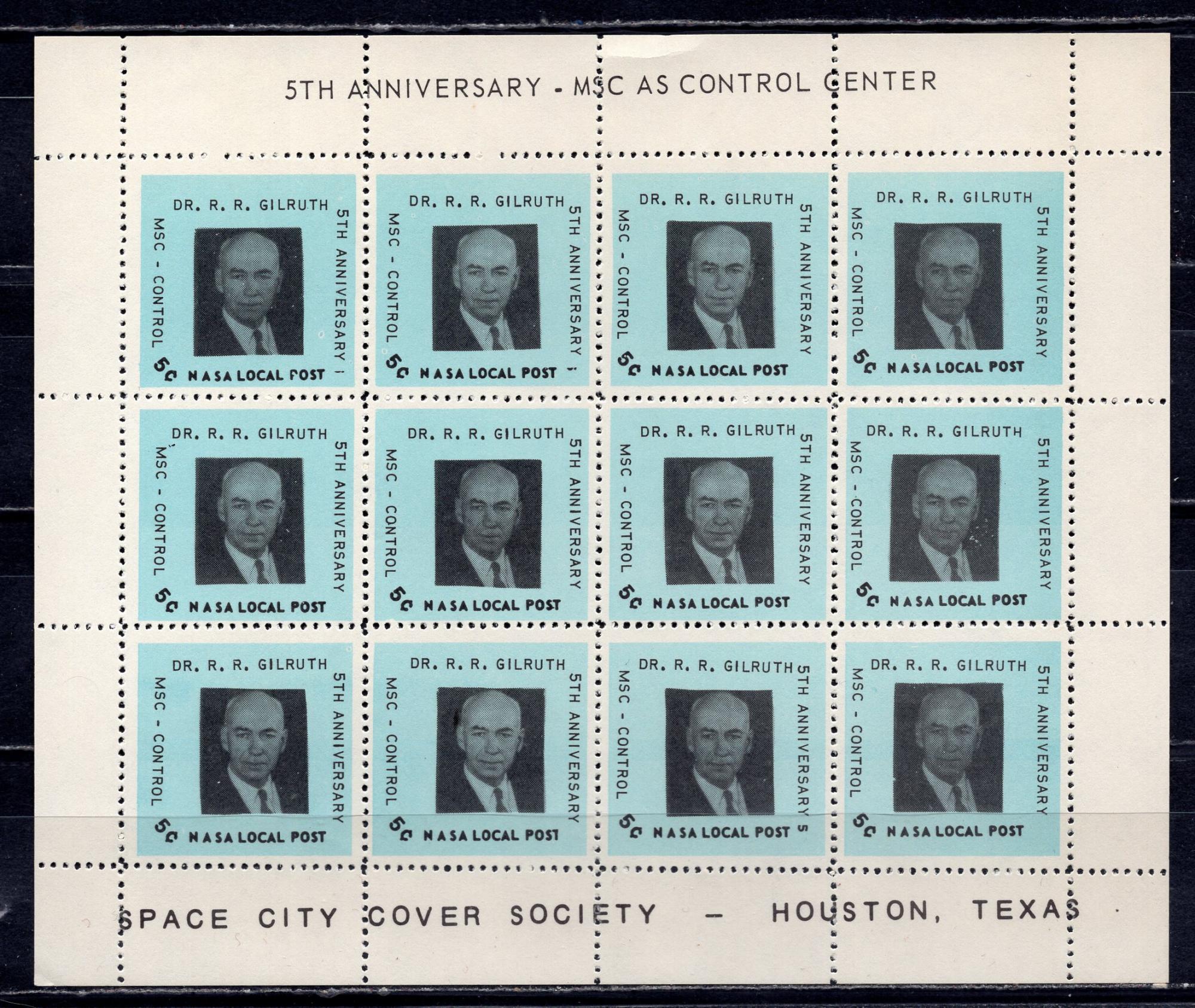 Почтовые марки. США. 1967. Космос. 5-ая годовщина Центра в Хьюстоне. МЛ. Локальная почта НАСА.