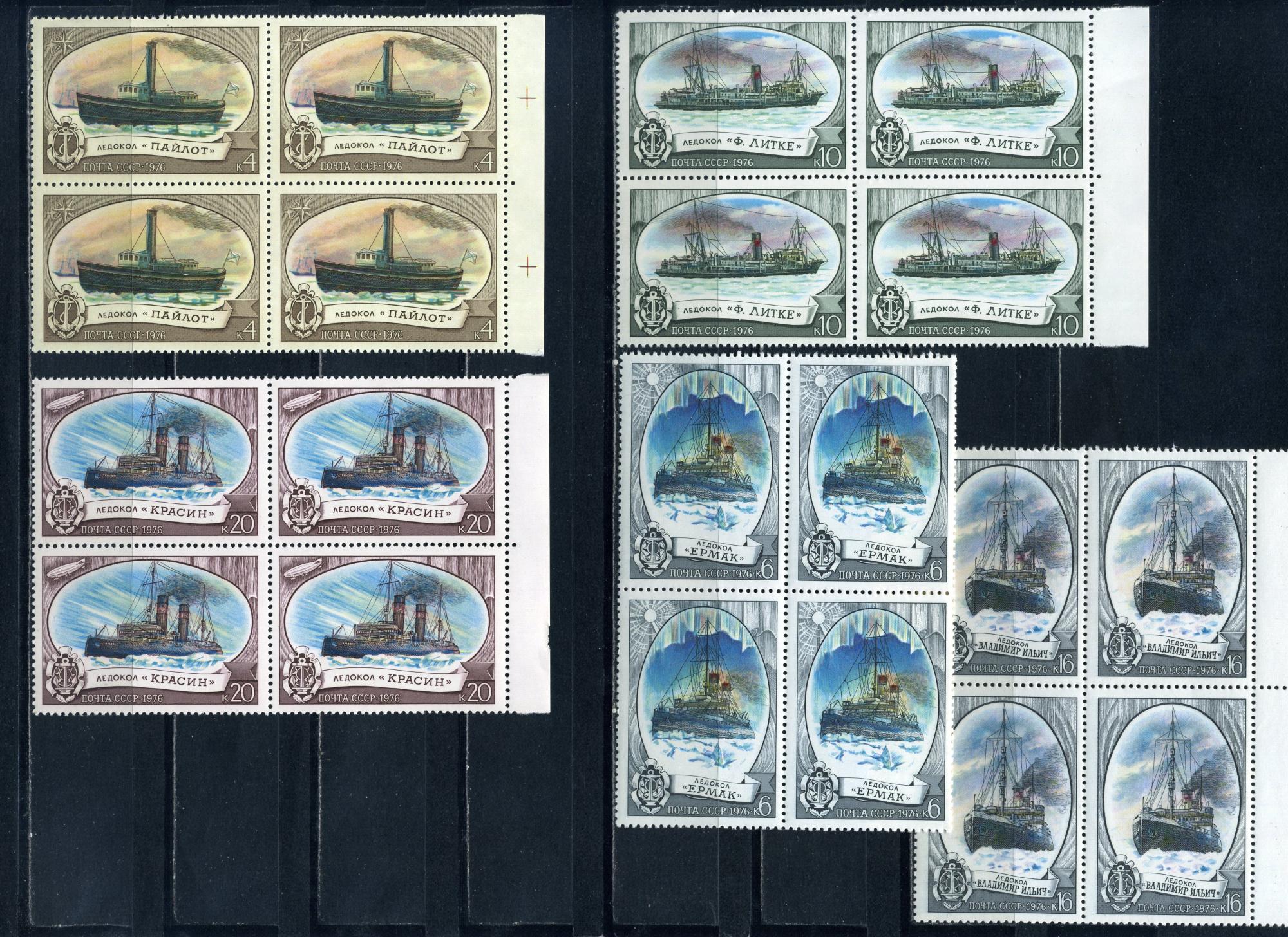Почтовые марки. СССР. 1976г. Ледоколы. №4662-4666. КБ х5. (кат. : 400р.)