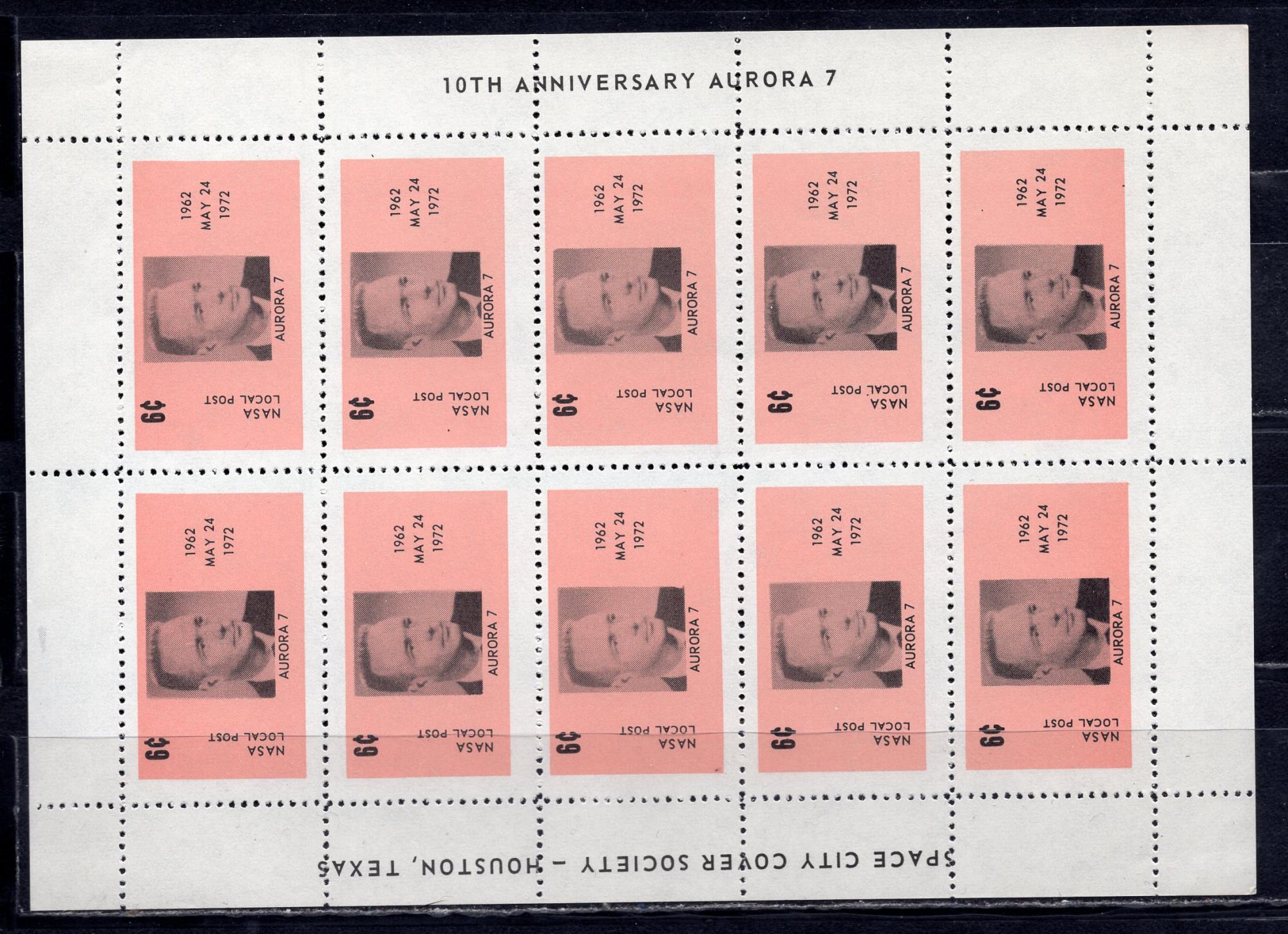 Почтовые марки. США. 1972 г. Космос. Локальная почта НАСА. Aurora 7. Лист.