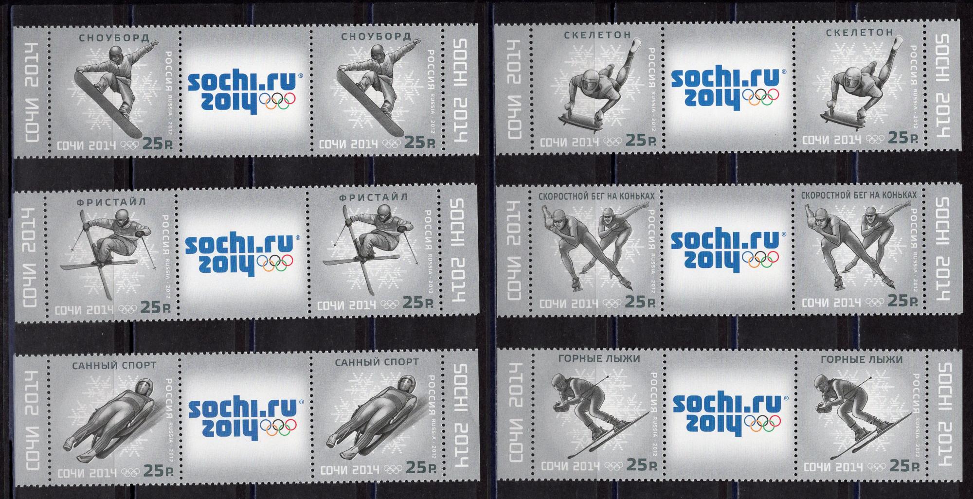 Почтовые марки. Российская Федерация, 2012. №1641-46. Ол. Игры в Сочи. СЦ с купоном.