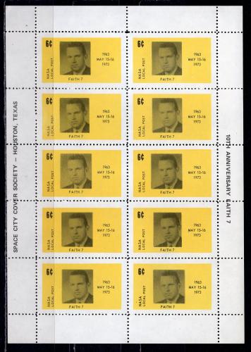Почтовые марки. США. 1973 г. Космос. Локальная почта НАСА. Faith-7 Лист.