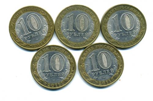 Монеты России. 10 рублей 2011 г. 5 шт.