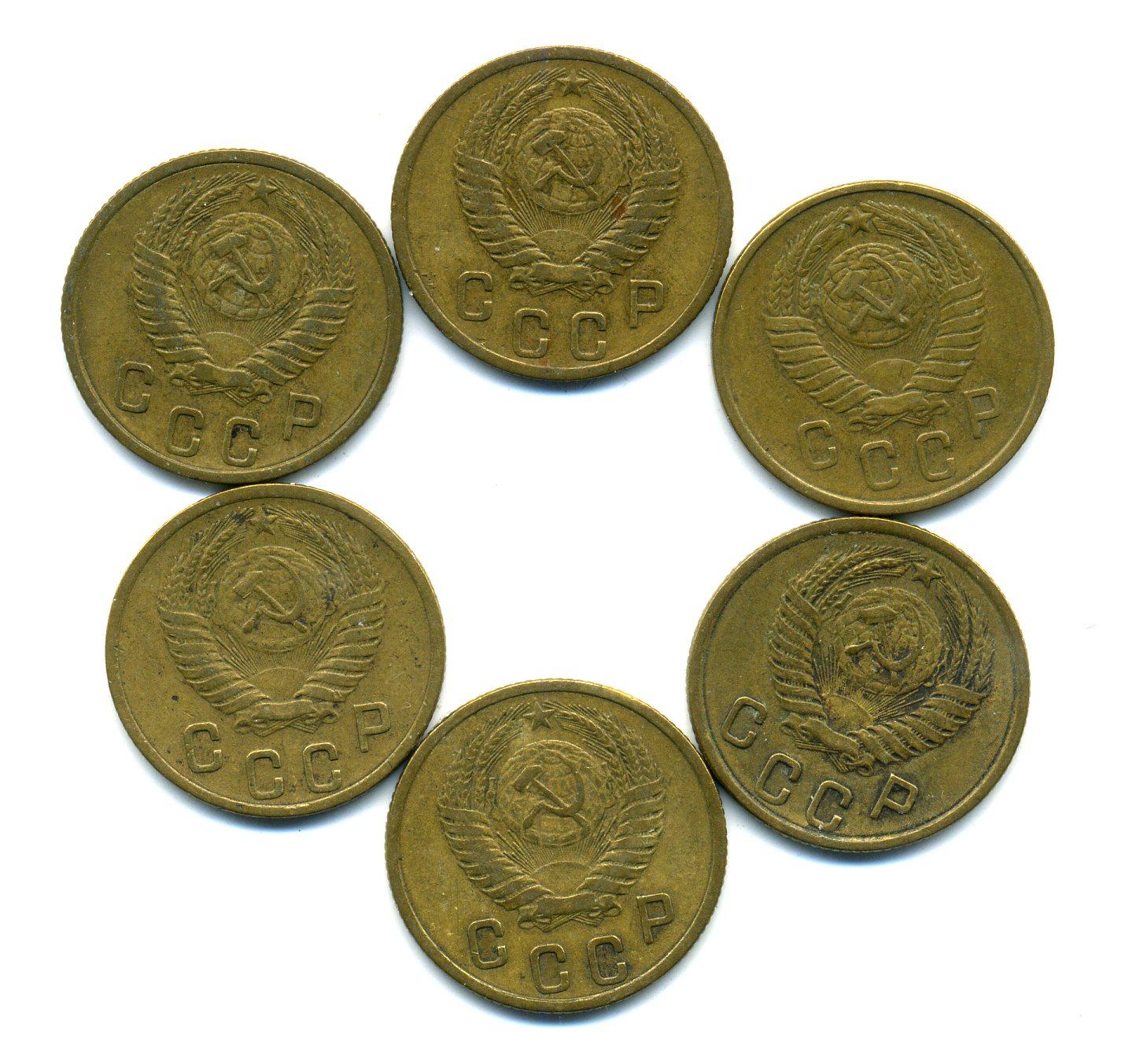 Монеты СССР. 2 копейки 1952-1957 г. 6 шт.