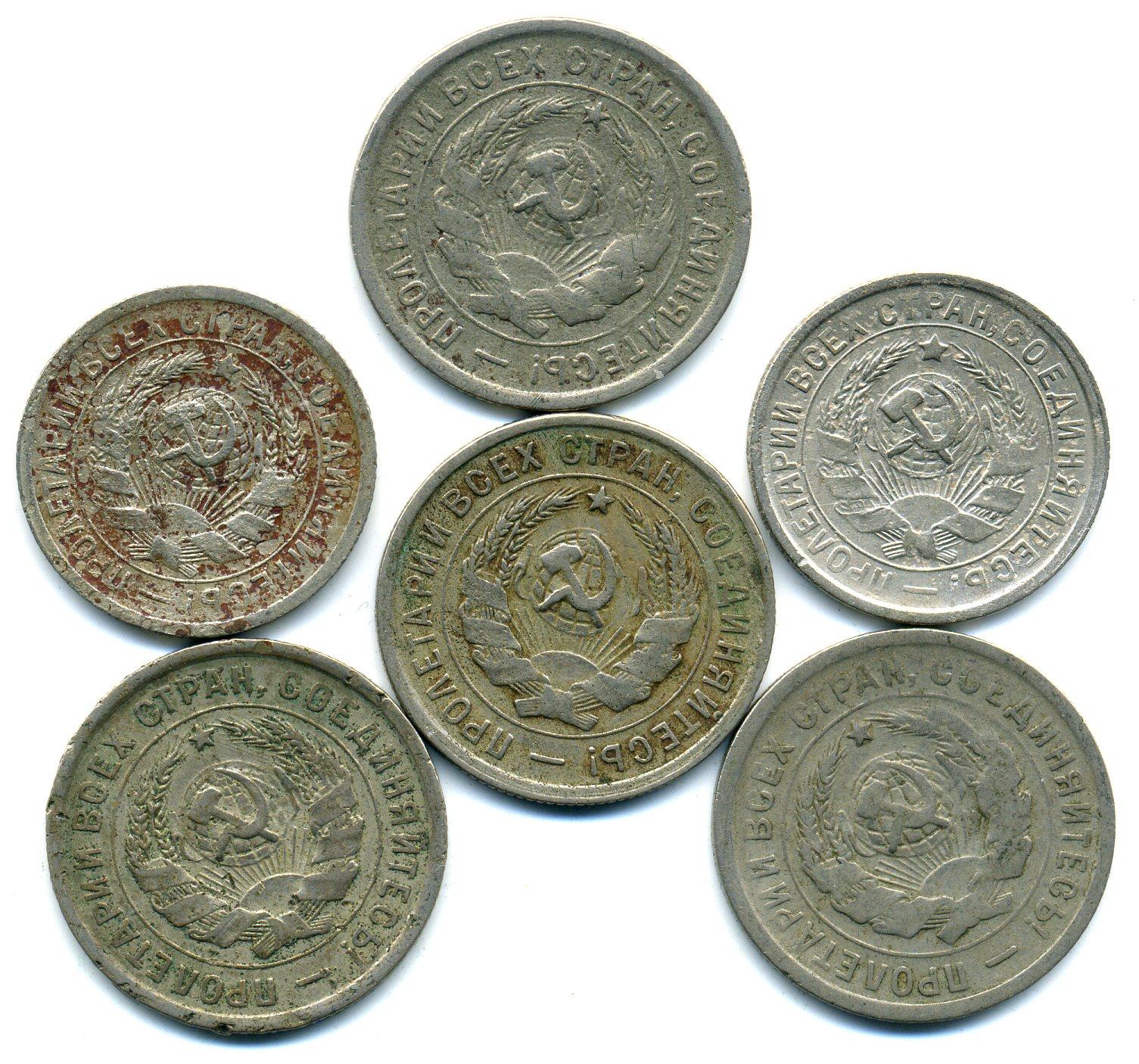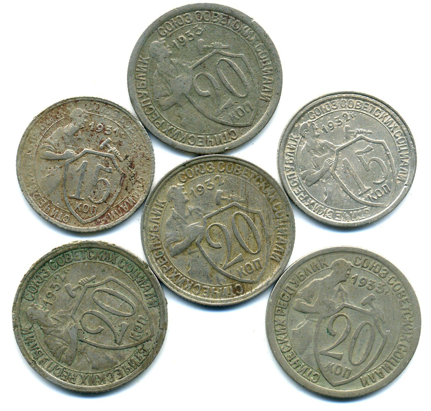 Монеты СССР. 15, 20 копеек 1931-1933 г. 6 шт.
