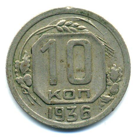 Монеты СССР. 10 копеек 1936 г.