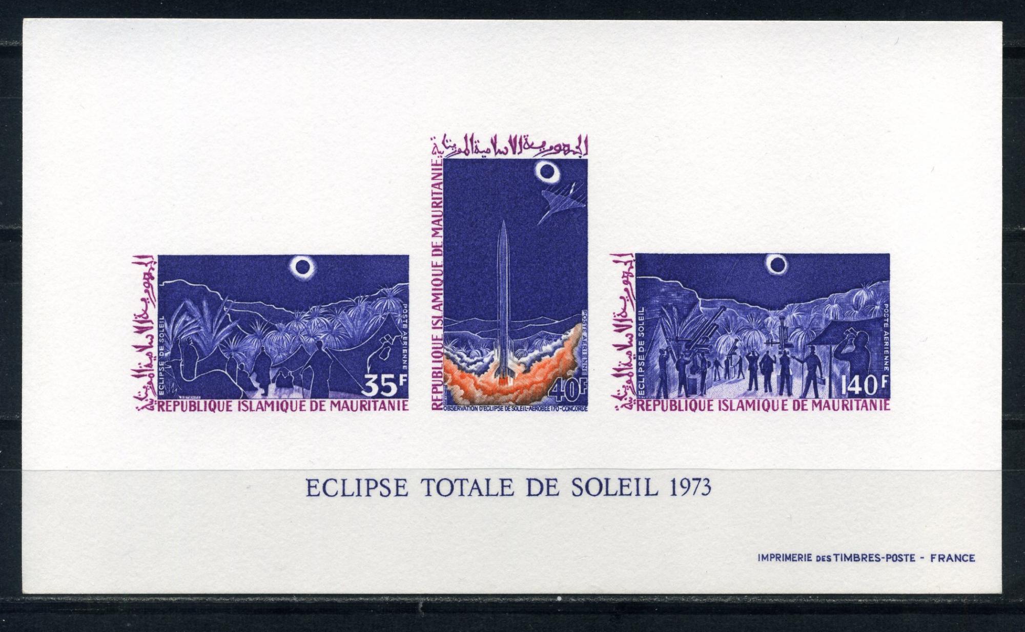 Почтовые марки. Мавритания. 1973г. Космос. Солнечное затмение. Блок №11В. Беззубц. Металлография на картоне.