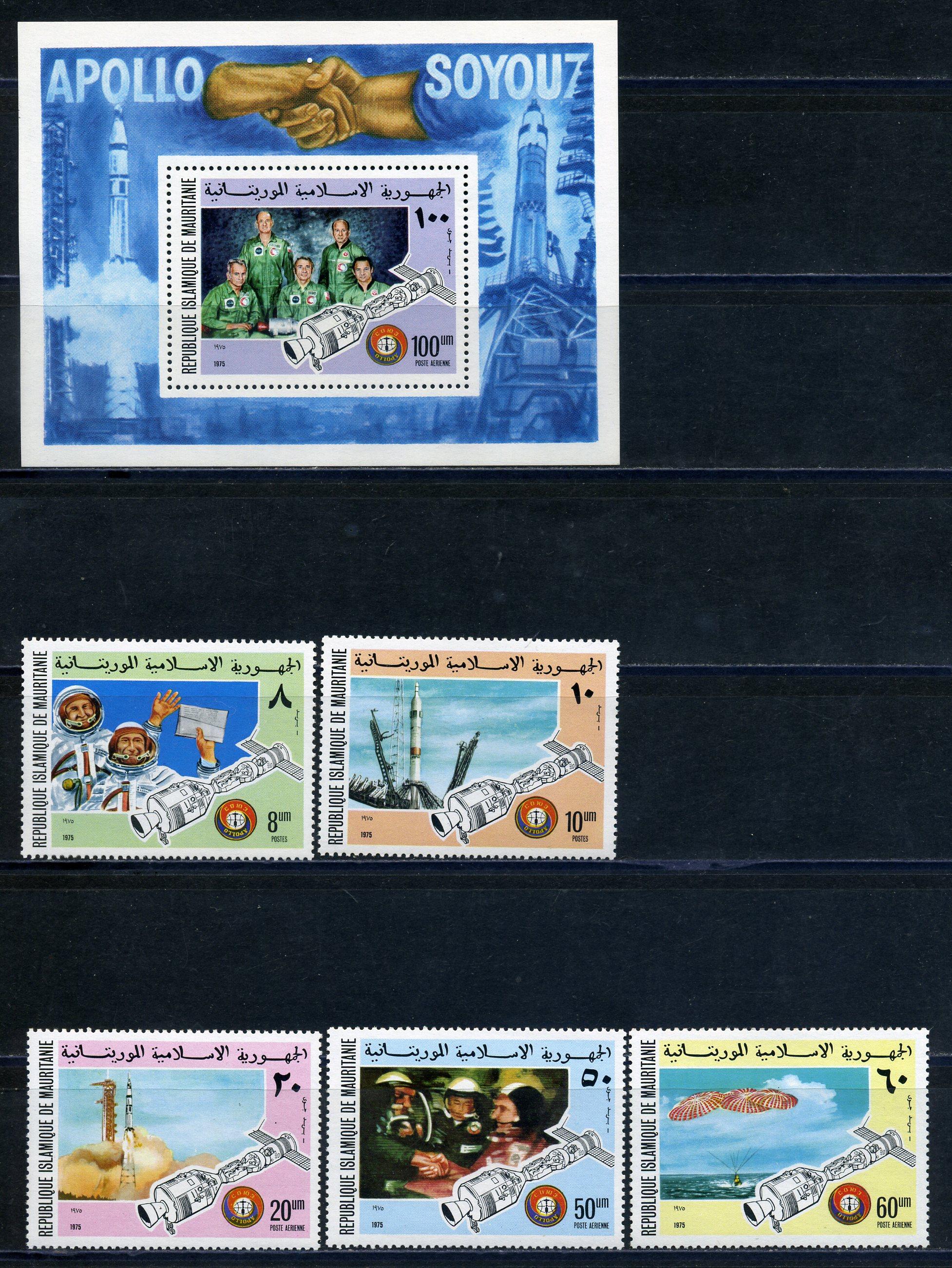Почтовые марки. Мавритания 1975 г Космос Союз-Аполлон № 522-526 БЛ 13