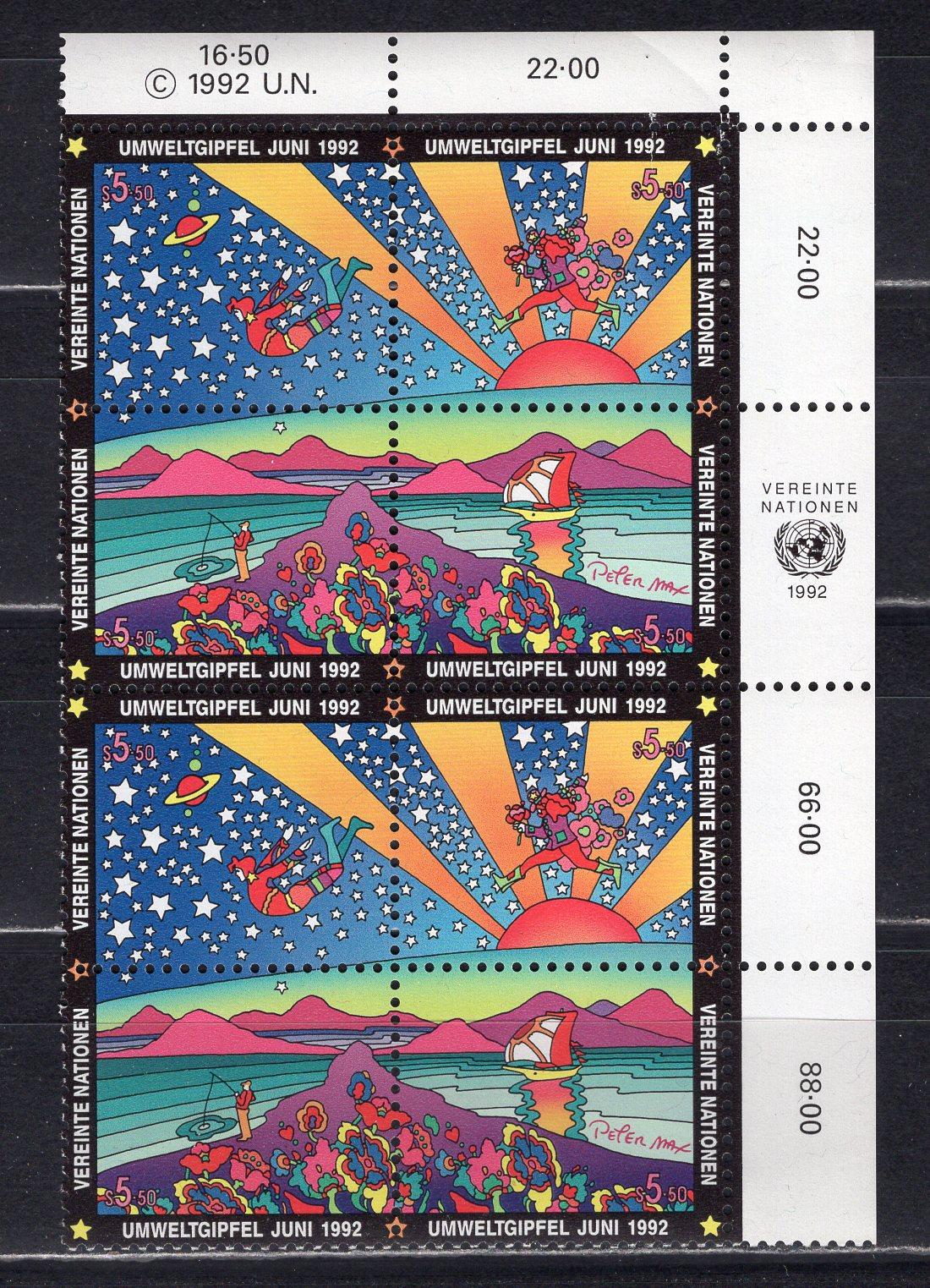 Почтовые марки. ООН-Вена. 1992г. Живопись. Петер Макс. Космос. №129-132. 2 сцепки.