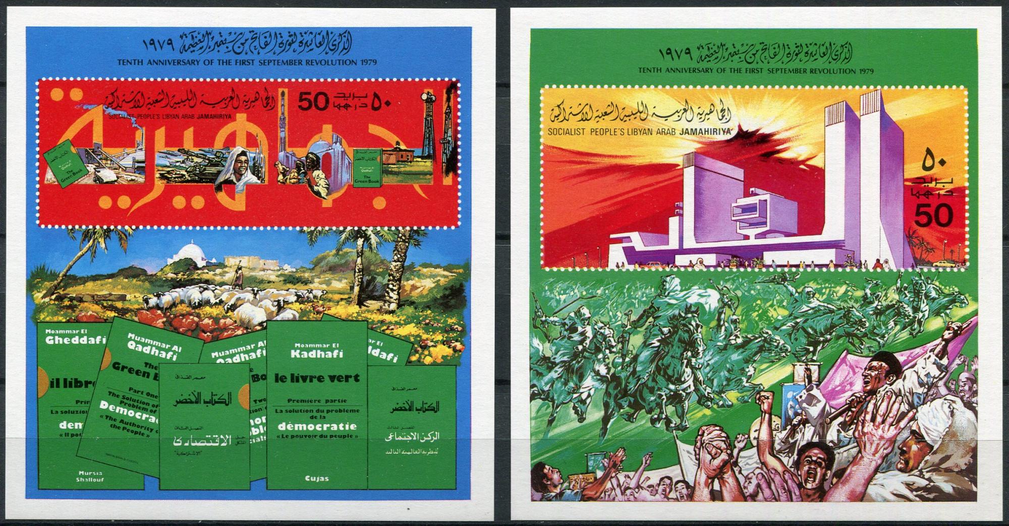 Почтовые марки. Ливия. 1979. Муамар Каддафи. Зелёная книга. № Бл. 38-39.