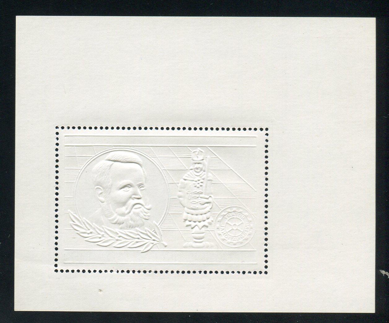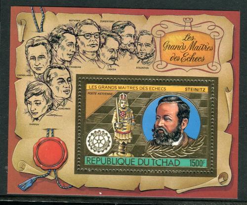 Почтовые марки. Чад, 1983 г. Бл. №204. Федерация шахмат. Стейниц. Фольга. Золото. (Mi 150,00 €)