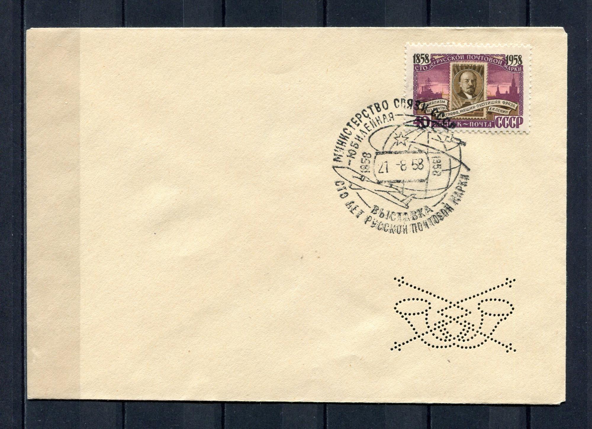 Конверт с маркой и СГ. СССР 1958 г. 100 лет Русской почтовой марки. КО.