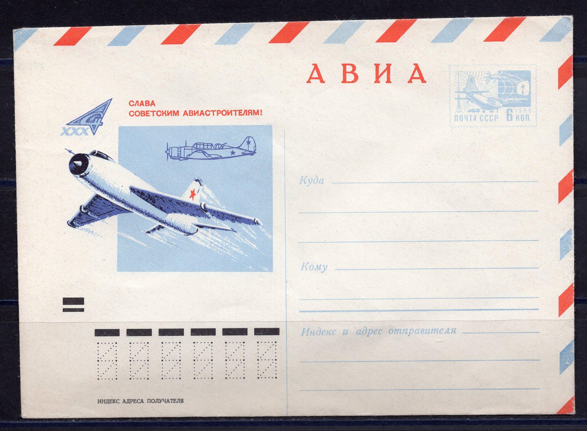 Почтовый конверт ХМК. СССР. 1970 г. Слава Советским Авиастроителям. КО.