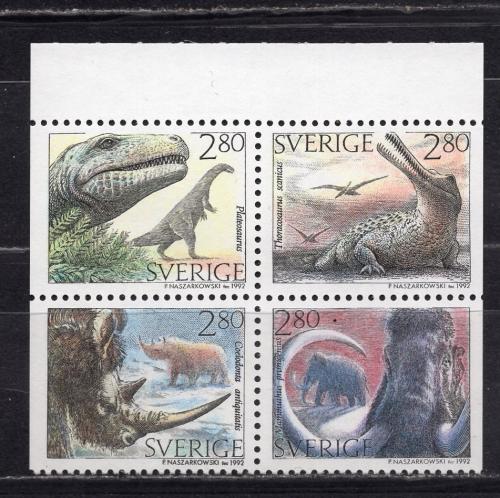 Почтовые марки. Швеция, 1992 г. Доисторические животные. №1738-1741.