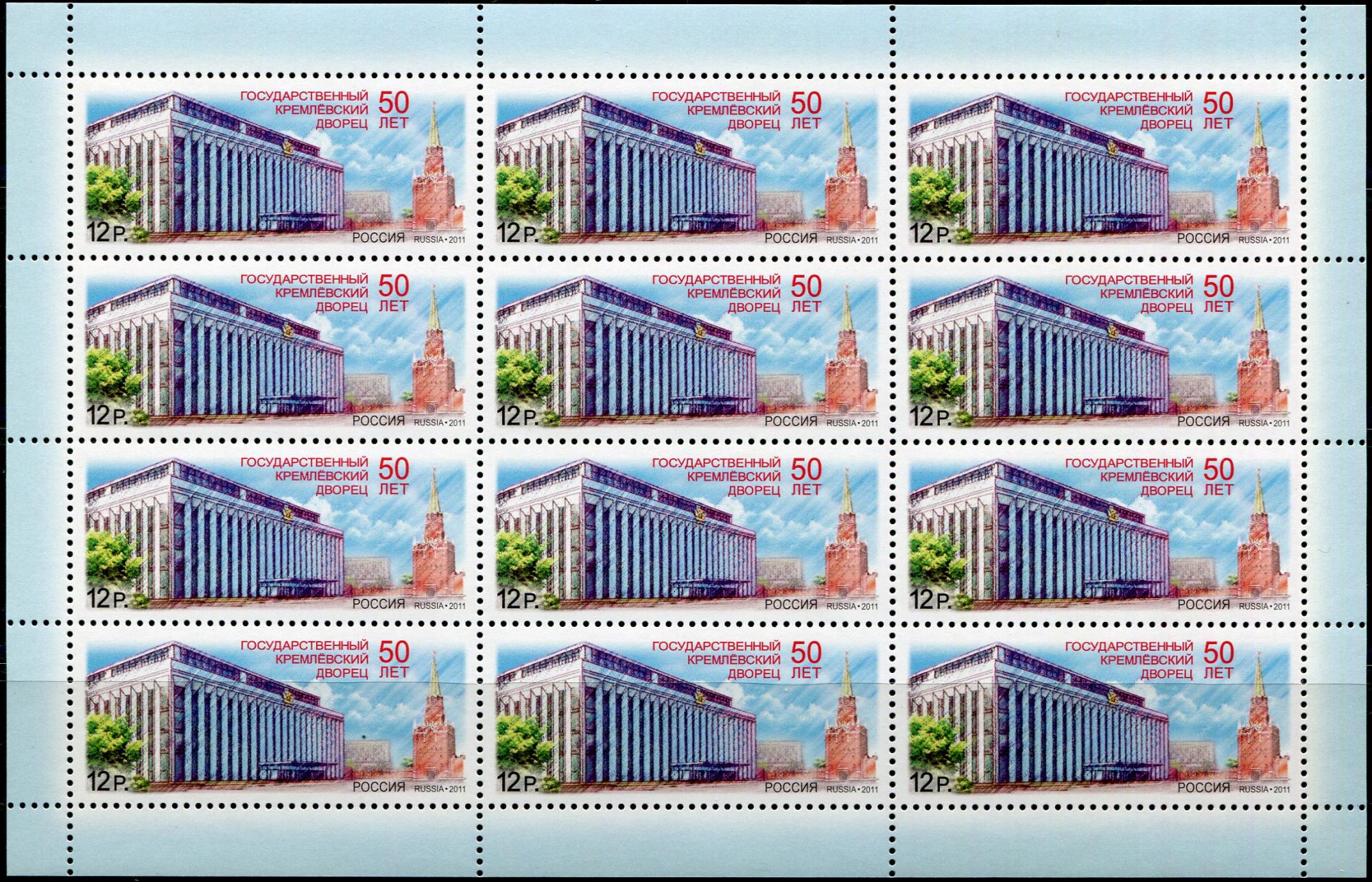 Почтовые марки. Россия. 2011. Кремлёвский дворец. ЛИСТ. № 1534