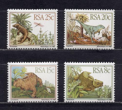 Почтовые марки. ЮАР, 1982 г. Доисторическая фауна. №622-625.