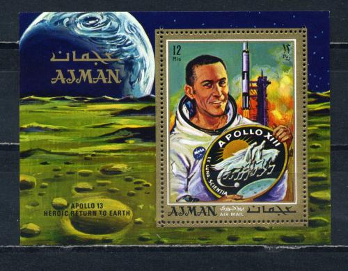 Почтовые марки. Аджман. 1970г. Космос. Аполло-13. Блок №193.