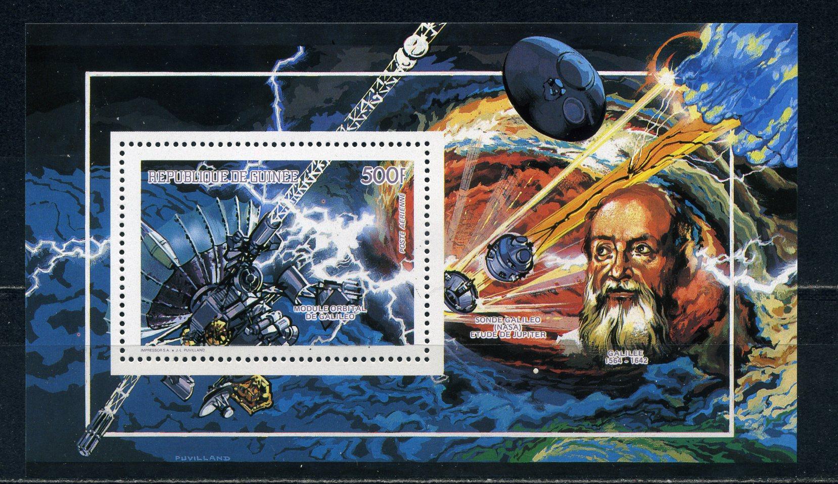 Почтовые марки. Гвинея. 1990г. Космос. Зонд Галилей. Блок №369А.