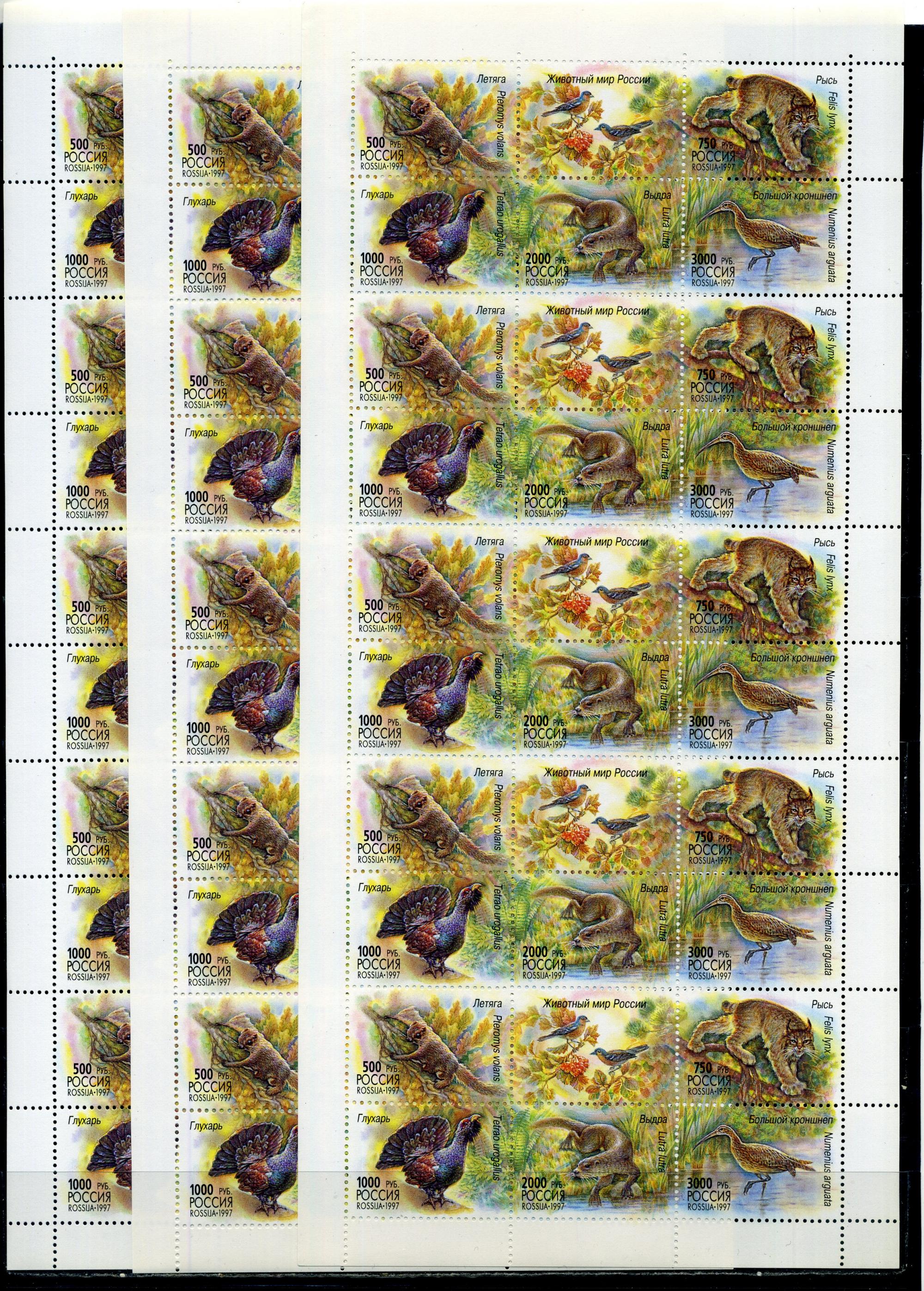 Почтовые марки. Россия. 1997г. Животный мир России. №376-380. Лист. 3 Штуки.