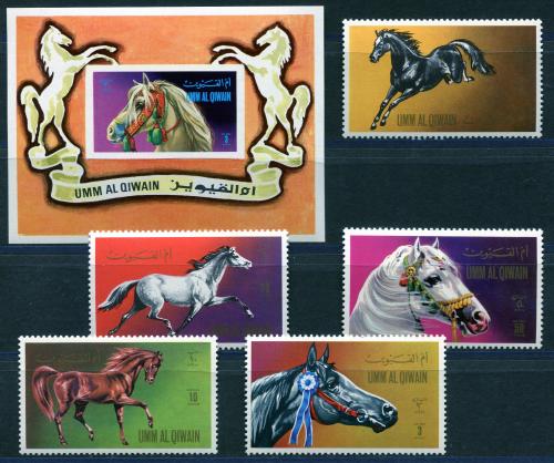 Почтовые марки. Умм-эль-Кайвайн. 1972. Лошади. № 496-501 Бл. 36 (без 1 м.).
