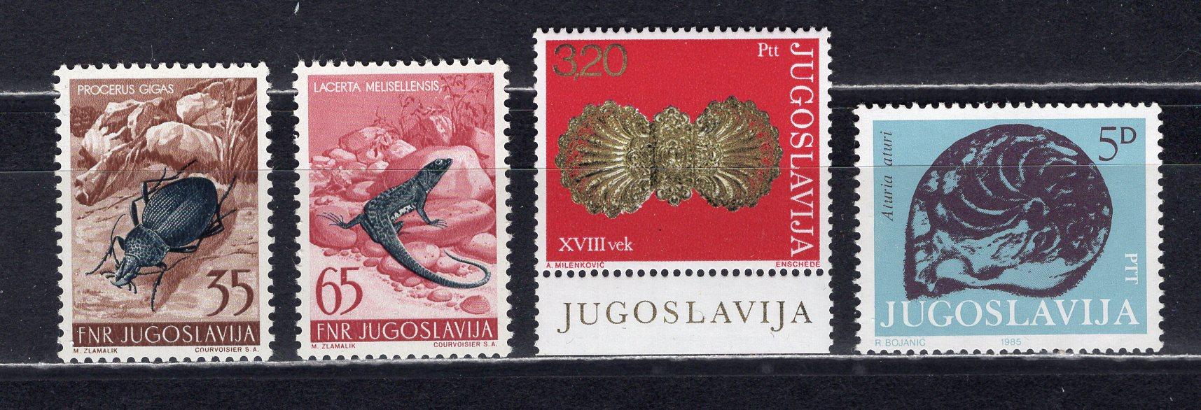 Почтовые марки. Югославия. 1954-1985гг. Жуки. Ракушки. Сборный лот. №745.747.1589.2092.