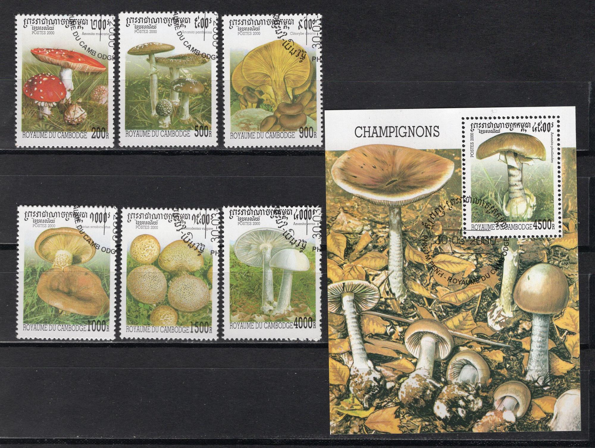 Почтовые марки. Камбоджа. 2000г. Грибы. №2061-2066. Блок №268.