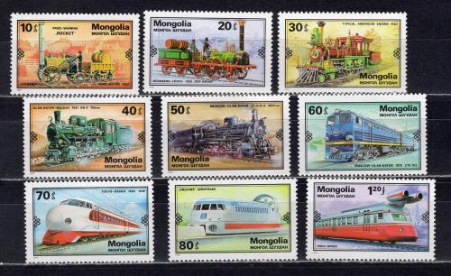 Почтовые марки. Монголия. 1979г. Локомотивы разных эпох. №1234-1242.