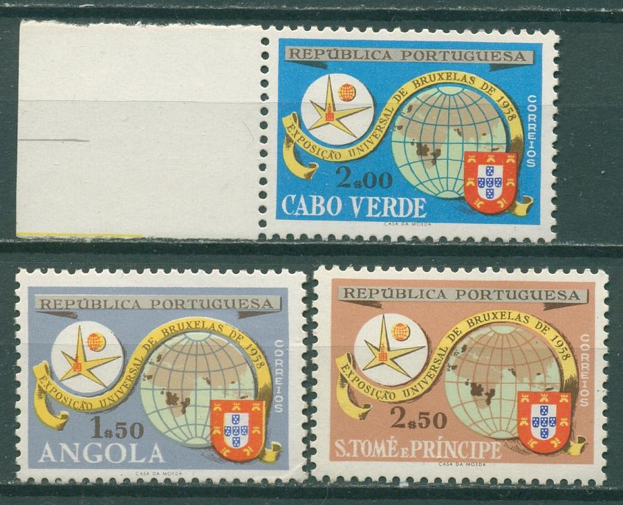 Почтовые марки. Порт.колонии-Ангола. Сан-Томе,Кабо-Верде. 1958г. Всемирная выставка. №414А.381С.305К.