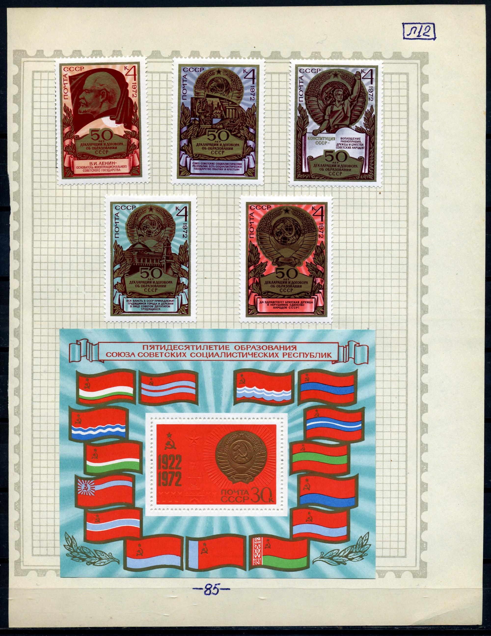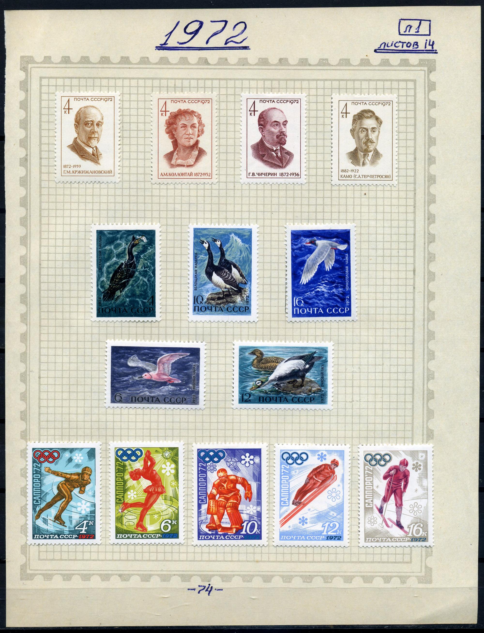 Годовой набор почтовых марок. СССР 1972 г. 14 листов.