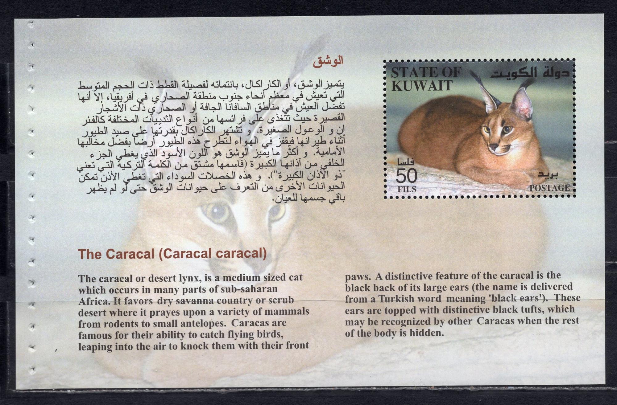 Почтовые марки. Кувейт, 2002г. Кошки. Каракал. №1761. Люкс-блок.