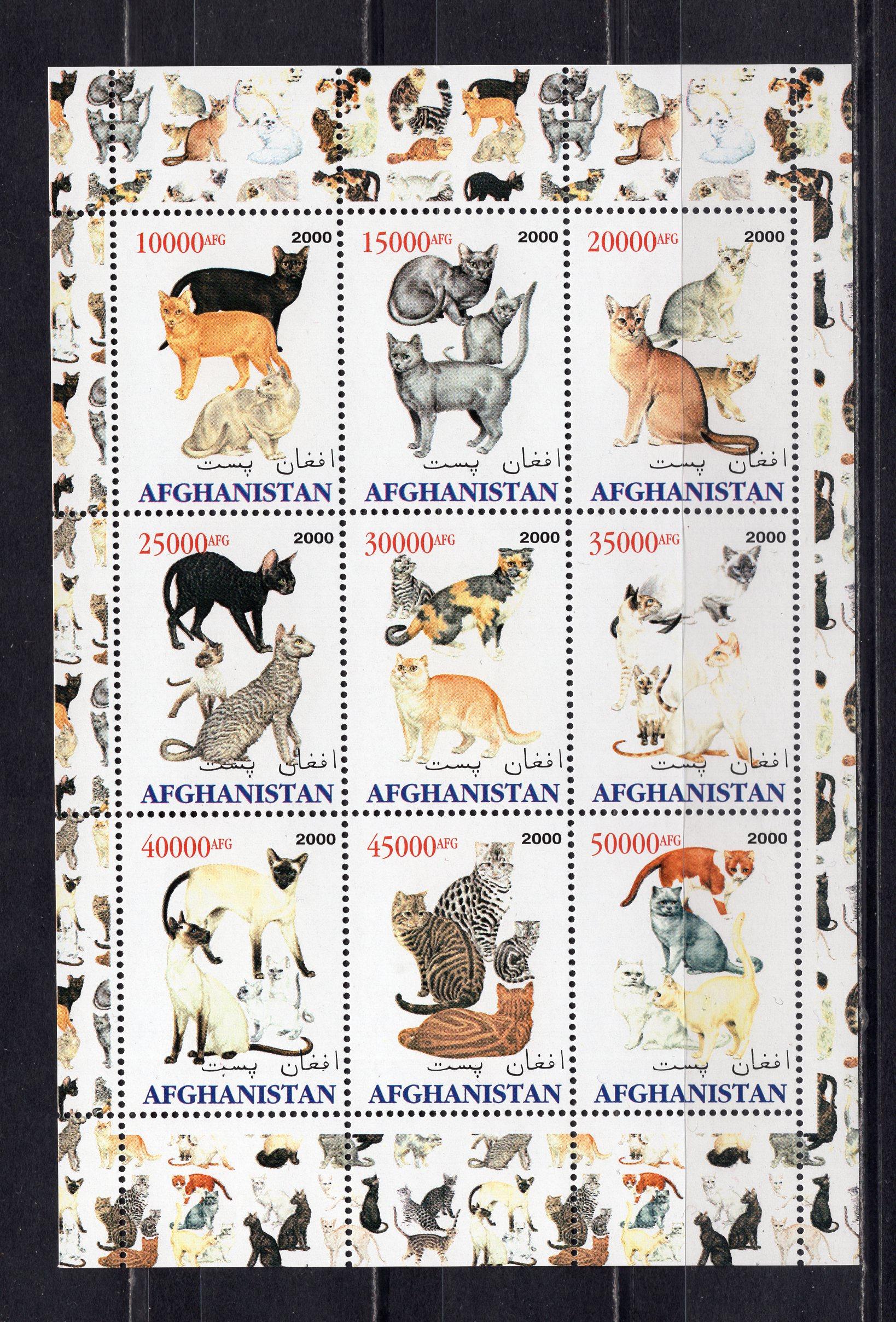 Почтовые марки. Афганистан, 2000 г. Кошки. Некатал.