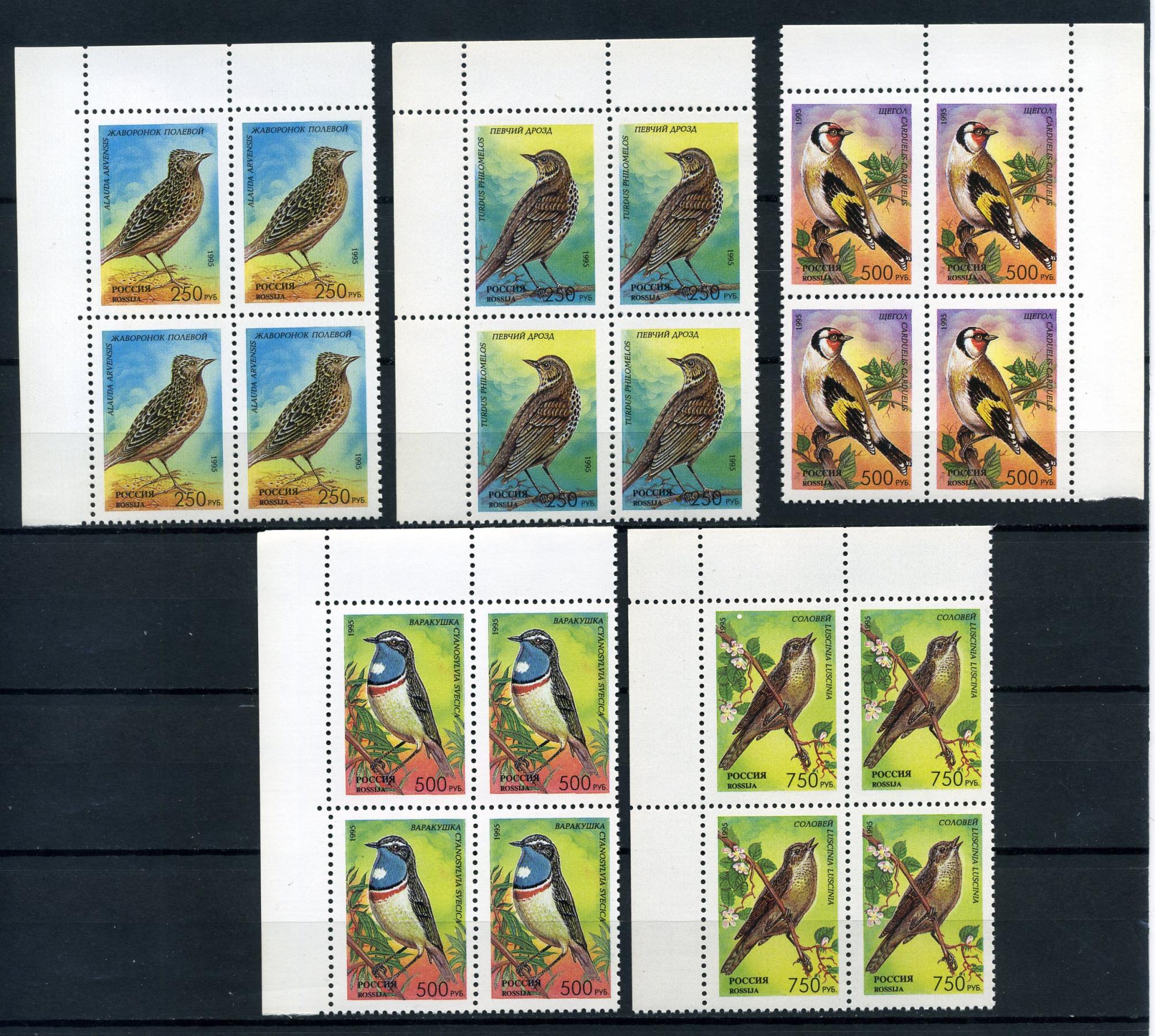 Почтовые марки. Россия 1995. Птицы. № 221-225. КБ