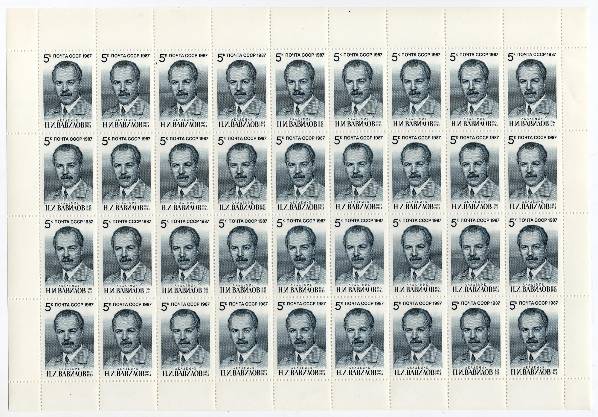 Почтовые марки. СССР, 1987 г. Вавилов. Лист. №5890. (Кат. 10 р. * 36)