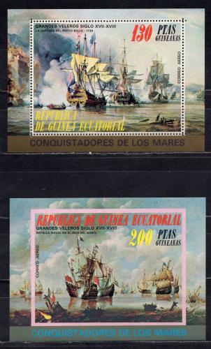 Почтовые марки. Экв. Гвинея, 1979г. Корабли и битвы. Бл. 312-313.