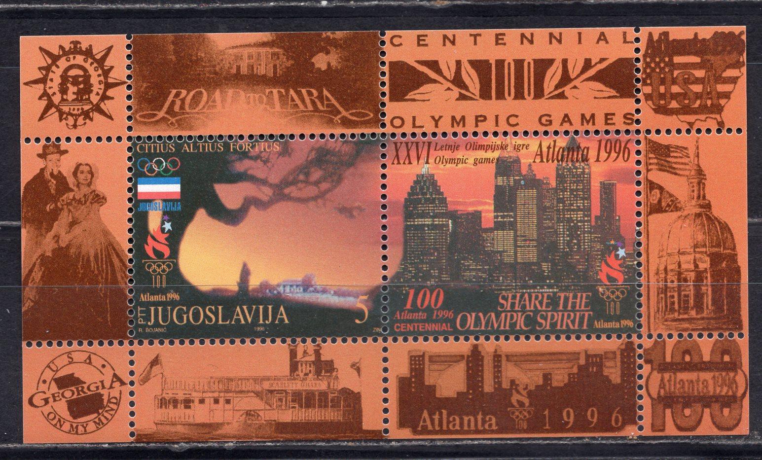 Почтовые марки. Югославия, 1996 г. Ол. Игры в Атланте.