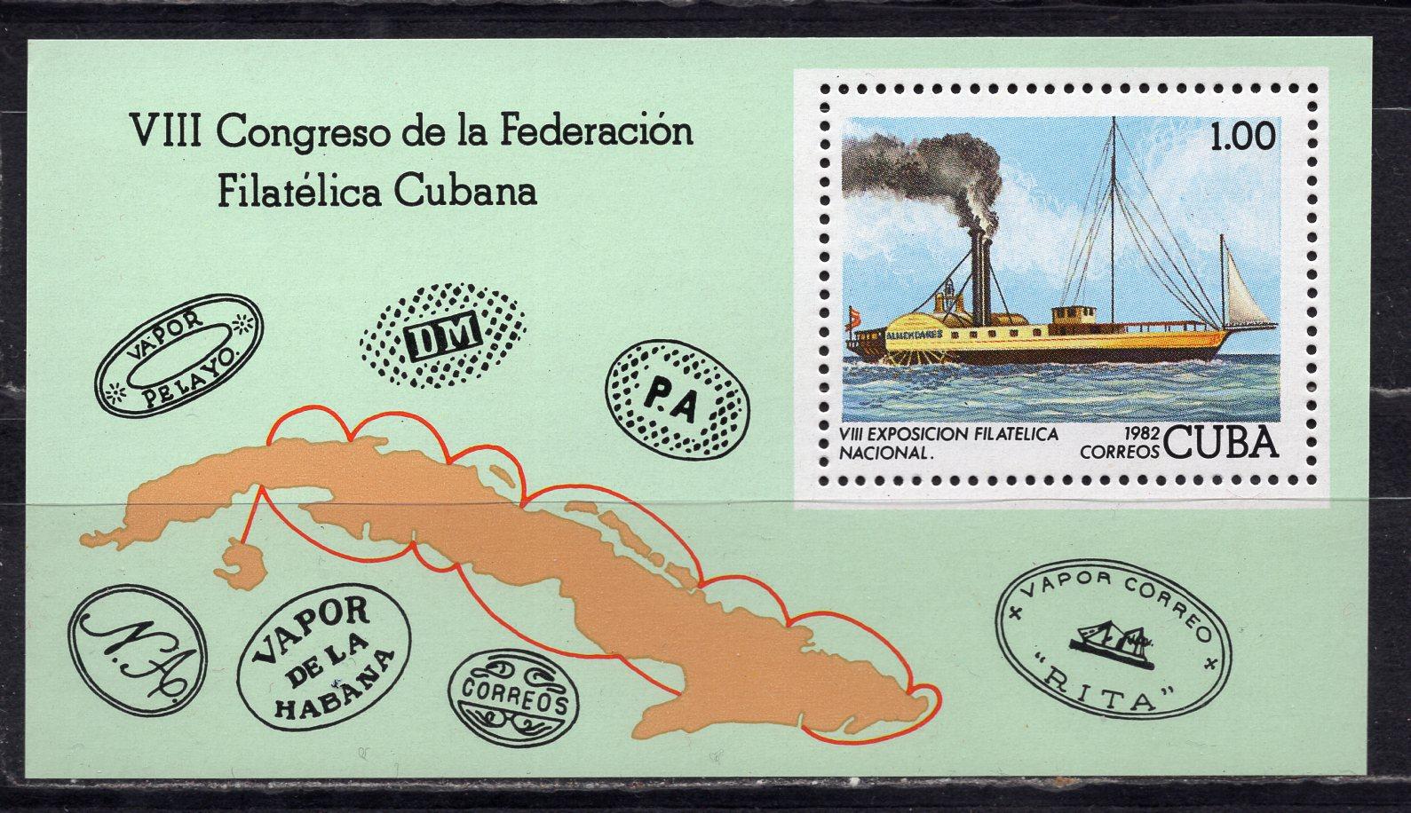 Почтовые марки. Куба, 1982 г. Филвыставка. Корабли. Бл. 74