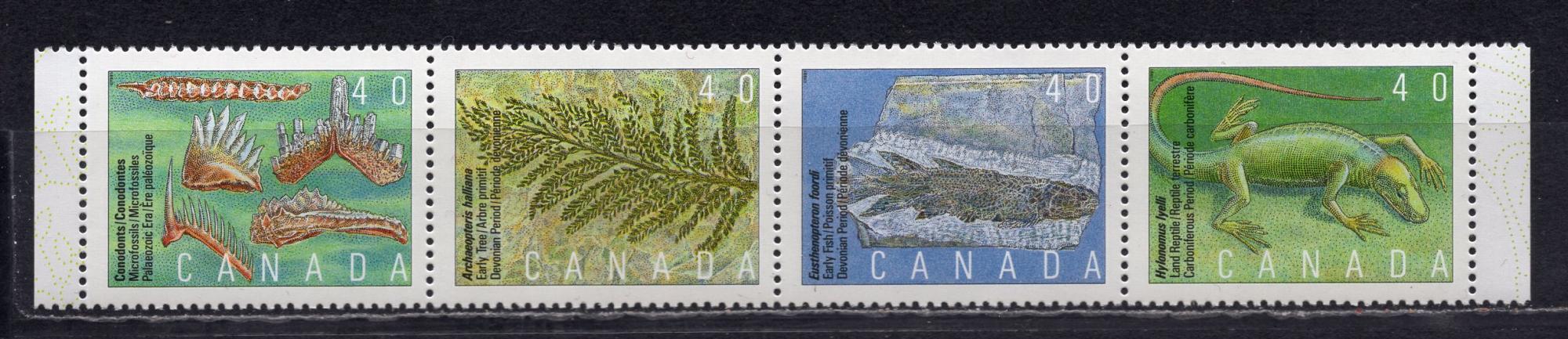 Почтовые марки. Канада, 1991 г. Доисторические животные и окаменелости. №1222-1225.