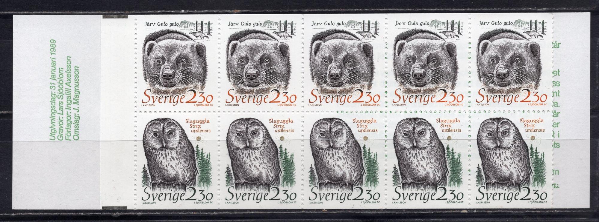 Почтовые марки. Швеция, 1989 г. Буклет. Стандарт. Фауна леса. №1520-1521.